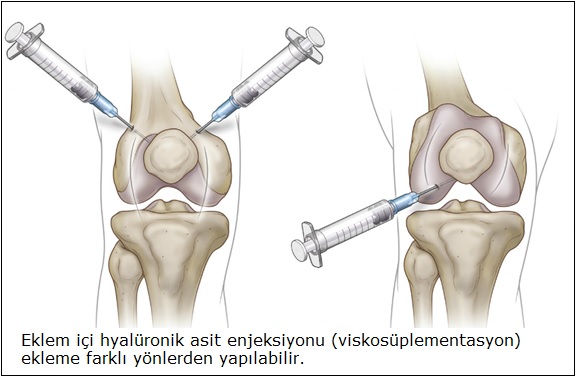 Eklem içine enjekte edilen hyalüronik asitin esas etkisi ağrıyı kesmek değildir. Doğrudan değil ama dolaylı yoldan ağrı kesici etki gösterebilir. Esas etkisi, eklemde eksilen hyalüronik asidin yerine konularak eklem kayganlığını sağlamak ve kıkırdağın dayanıklılığını artırmaktır. Sağlıklı beslenen ve kayganlığı artan eklemde ağrılar da azalır. Eklemin yük taşıma kapasitesi artar.